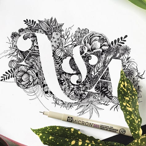 And they were. By year three I really went for it. I increased my price to $450 / drawing. I paid for a Squarespace website with a bit of automation: clients could check-out and pay directly online, saving me the back-and-forth of onboarding emails. They could specify the letters they wanted, the typeface, and their preferred flowers and desired symbolism.